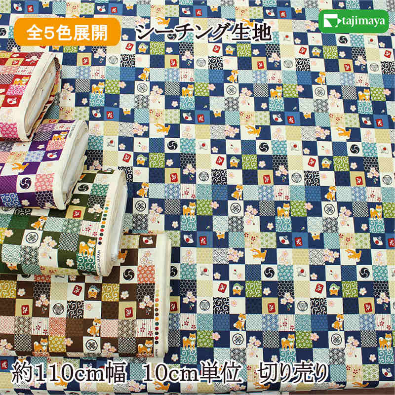 和柄 金彩千代紙にしば犬文様 全6色 約110cm幅 10cm単位 切り売り