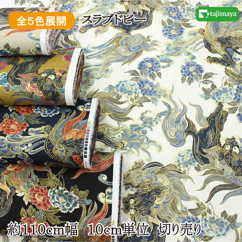 和柄 金彩唐獅子文様 全5色 約110cm幅 10cm単位 切り売り