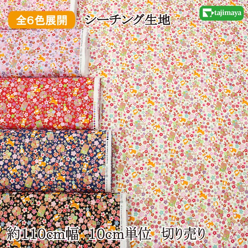 和柄 うさぎと疋田桜文様 全6色 110cm幅 10cm単位 切り売り【布地 生地 和柄 和柄生地】