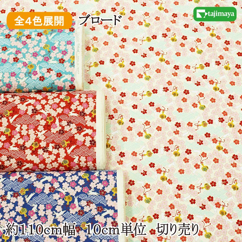 ブロードpt コットンこばやし 出雲うさぎ文様 全4色 約110cm幅 10cm単位 切り売り