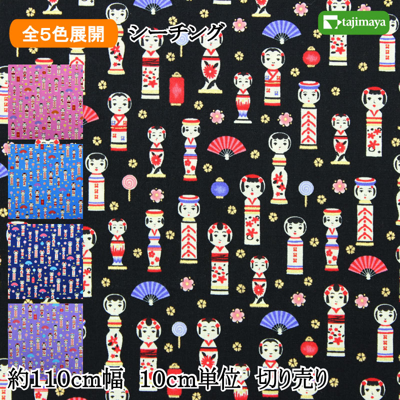 和柄 民芸の里 金彩こけし文様 全5色 110cm幅 10cm単位 切り売り【R】【C】
