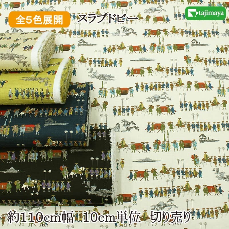 和柄 大名行列文様 全5色 約110cm幅 10cm単位 切り売り