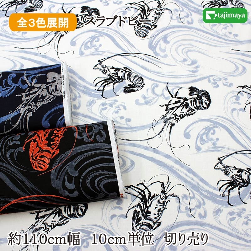 和柄 伊勢海老文様文様 全3色 約110cm幅 10cm単位 切り売り