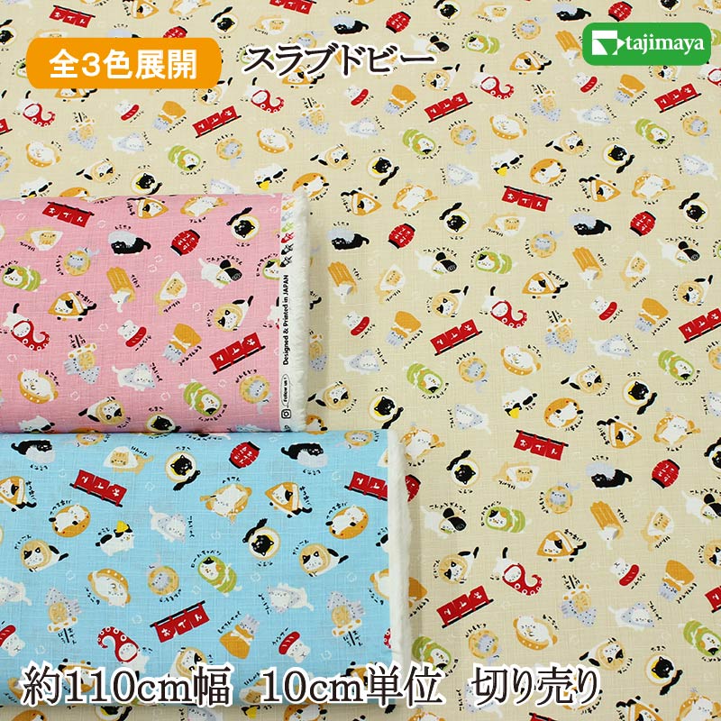 和柄 和ものがたり すしねこ 全5色 約110cm幅 10cm単位 切り売り