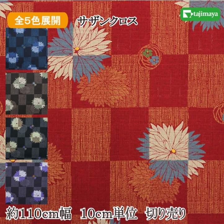 和柄 花魁文様 全5色 約110cm幅 10cm単位 切り売り
