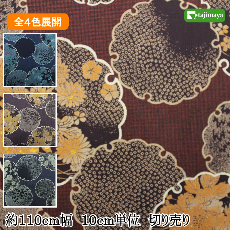 幾何牡丹文様 全2色 110cm幅 10cm単位 切り売り【和 生地 布地 和柄生地】