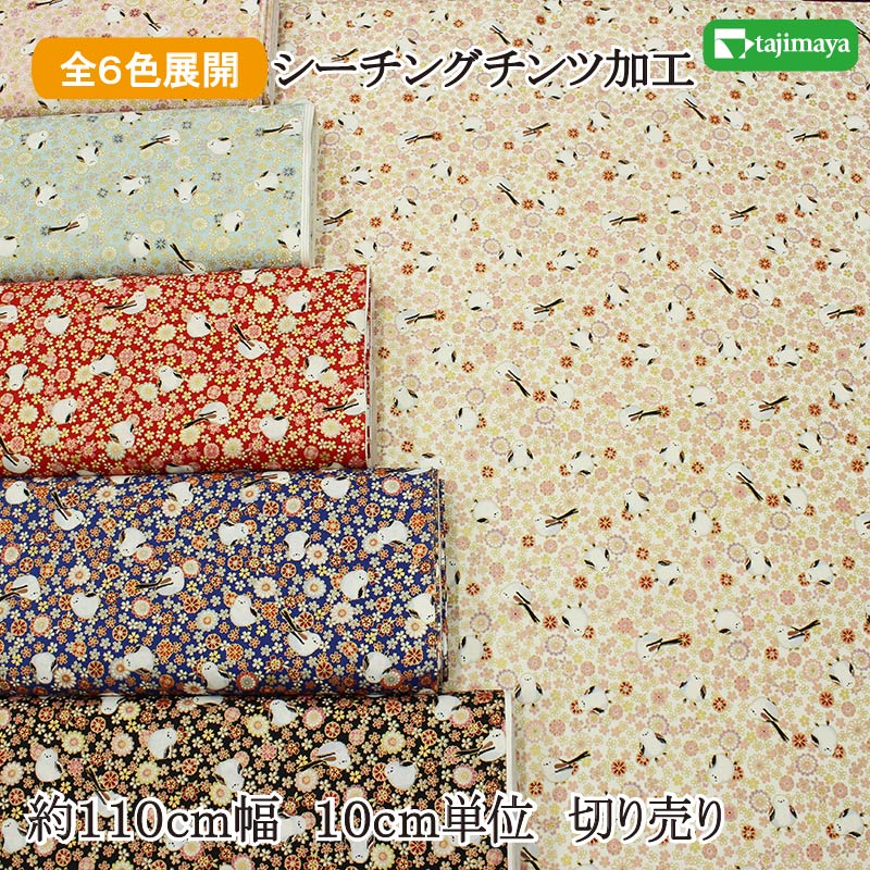 和柄 百花繚蘭 鶴寿 亀甲に鶴丸文様 全6色 約110cm幅 10cm単位 切り売り