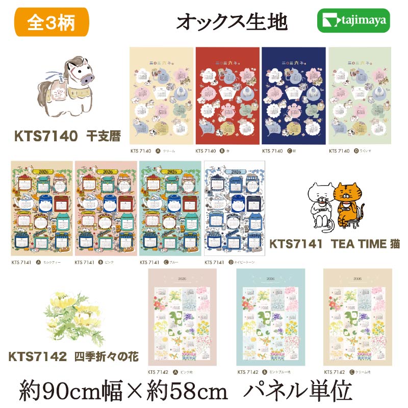 2026年 布カレンダー <パネル単位> (干支暦 TEATIME猫 四季折々の花)
