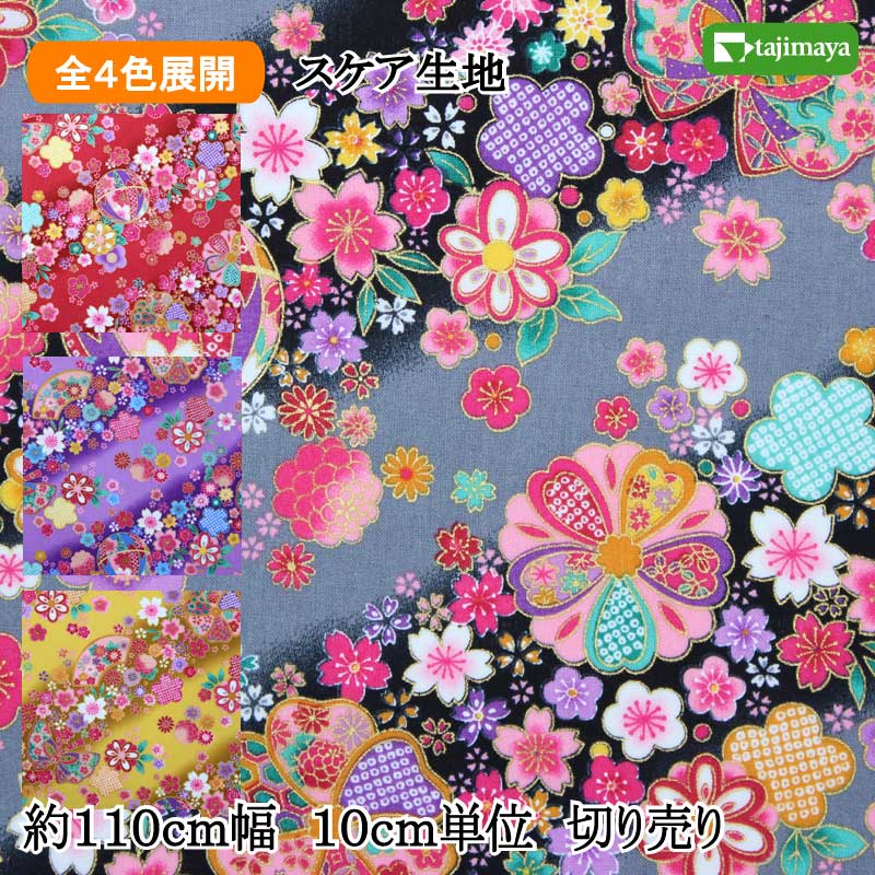 和柄 金彩斜め花まつり文様 全4色 110cm幅 10cm単位 切り売り【布地 生地 和柄】【和柄生地】