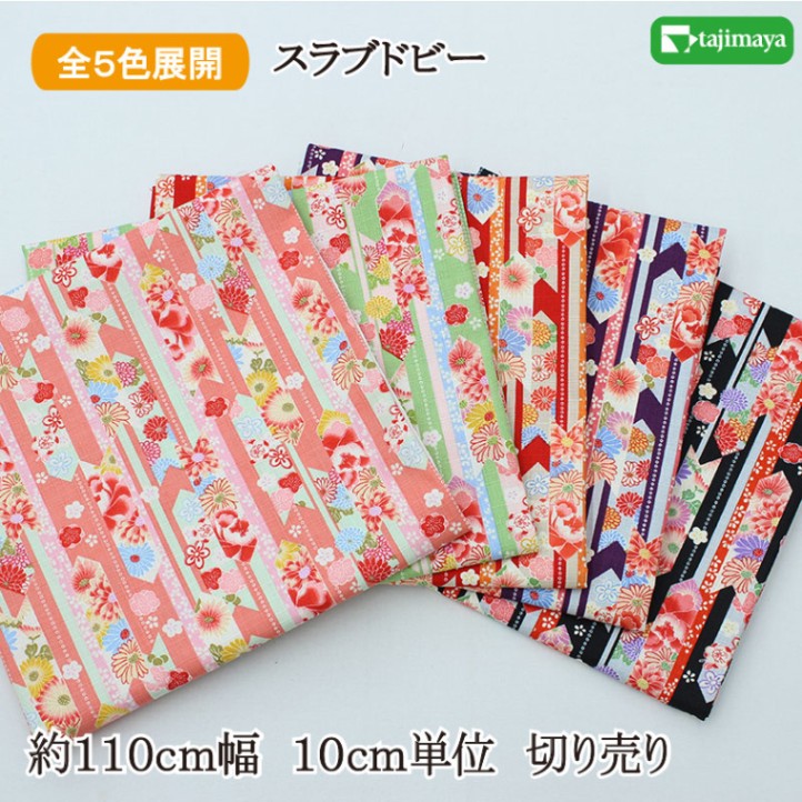 和柄 矢羽根縞文様 全5色 約110cm幅 10cm単位 切り売り