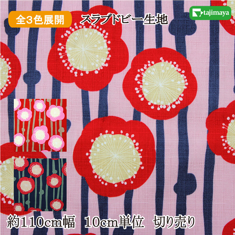和柄 大梅によろけ縞文様 全3色 110cm幅 10cm単位 切り売り【布地 生地 和柄 和柄生地】【IT-0133】