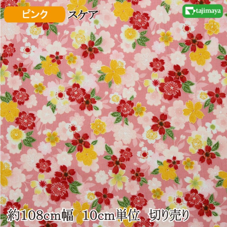 桜ざんまい ピンク 約108cm幅 10cm単位 切り売り【布地 生地 和柄 マスク 和柄生地 コットン】