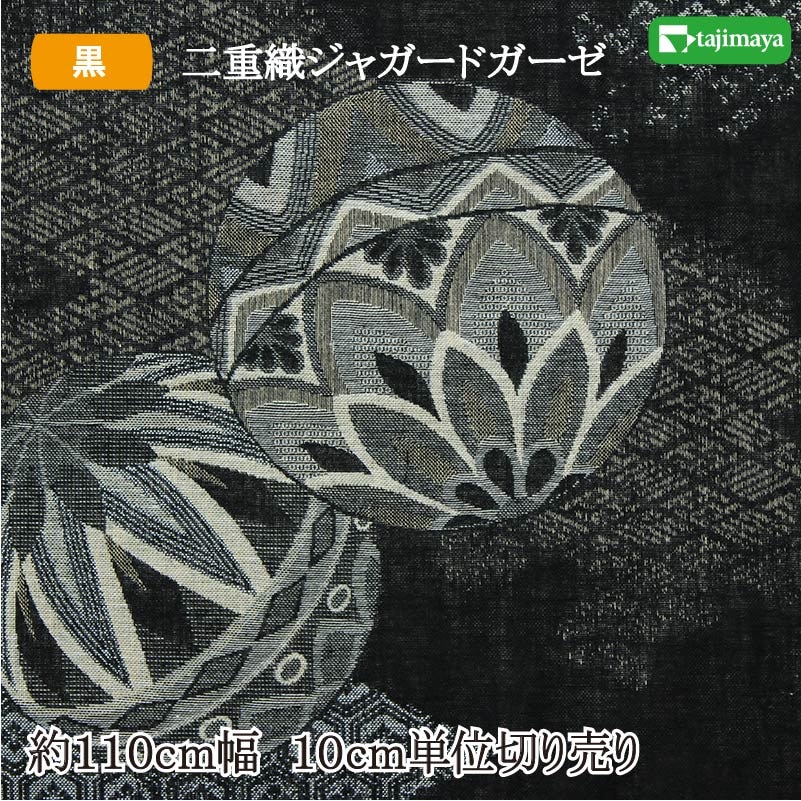 和柄 二重織ジャガードガーゼ 大まり文様 黒 約110cm幅 10cm単位 切り売り 【布地 生地 和柄】