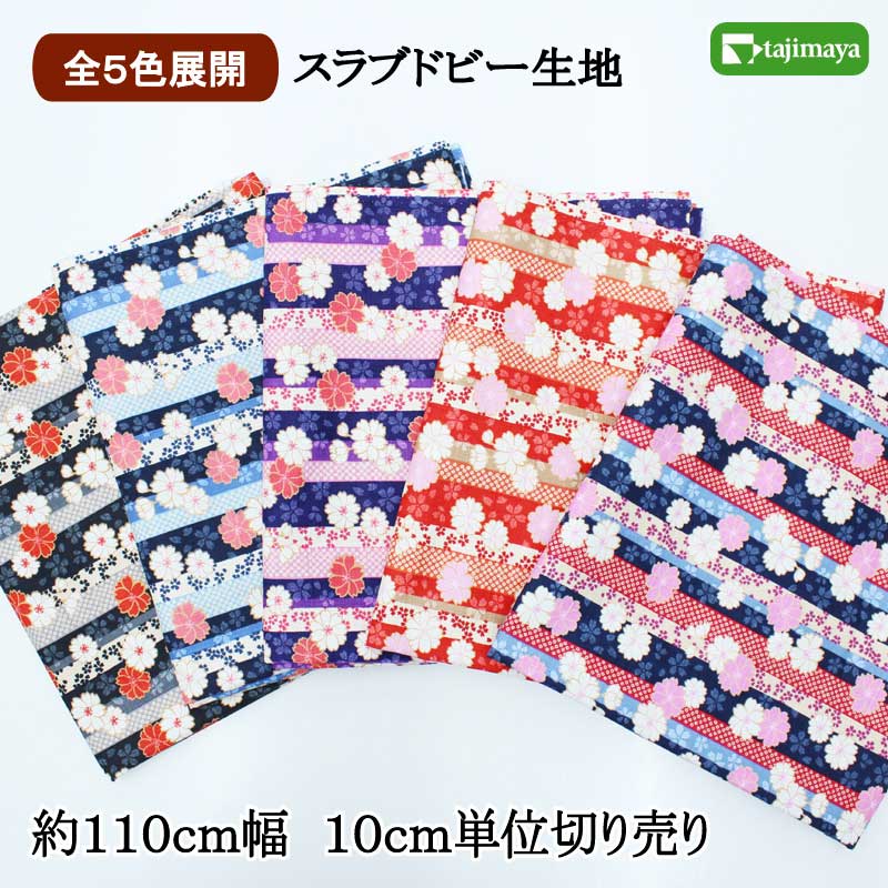 古典縦縞に桜文様 全5色 約110cm幅 10cm単位 切り売り【布地 生地 和柄】【和柄生地】【RS】