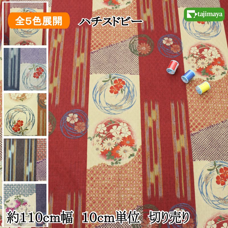 和柄 縞絣大和花文様 全5色 10cm単位 切り売り【布地 生地 和柄 和柄生地】