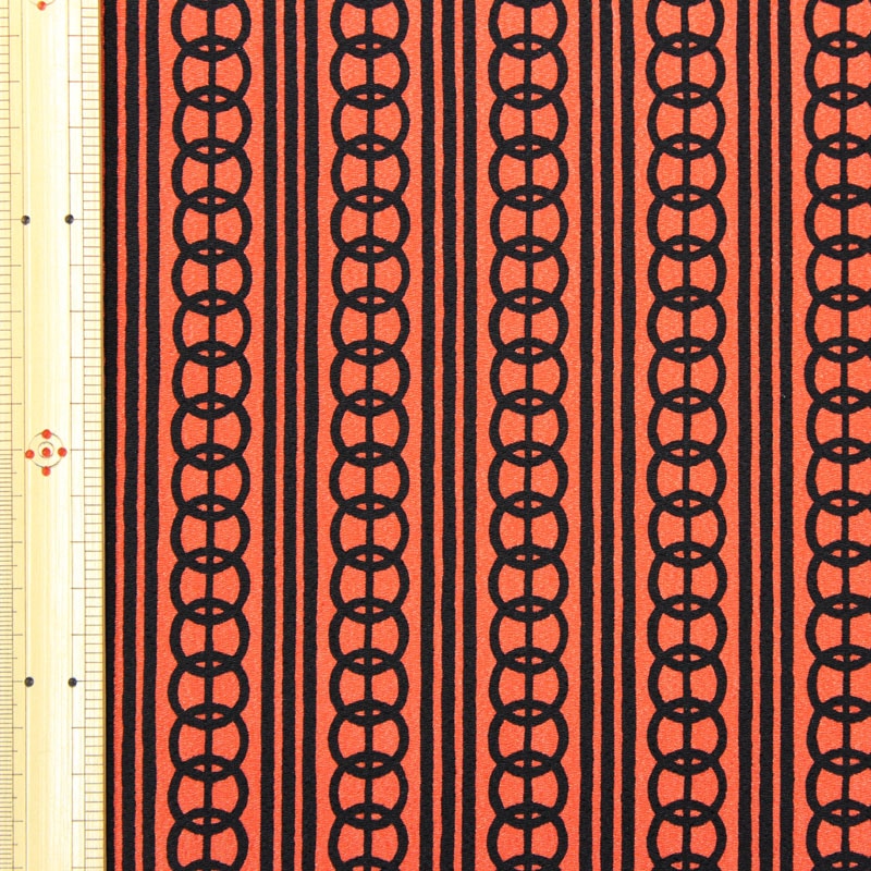 和柄 ポリエステルちりめんプリント 輪つなぎ縞文様 レンガ 約110cm幅 10cm単位 切り売り【布地 生地 和柄 縮緬】【TS2】【C】