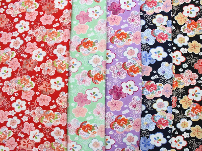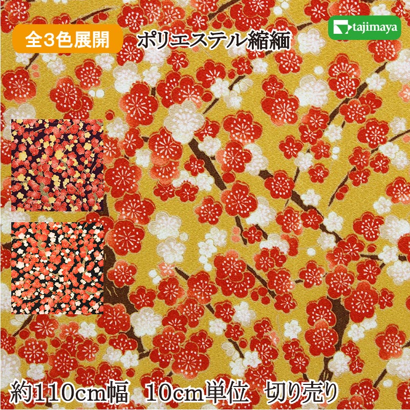 和柄 ポリエステルちりめんプリント 小春梅 全3色 110cm幅 10cm単位 切り売り【布地 生地 和柄 和柄生地】