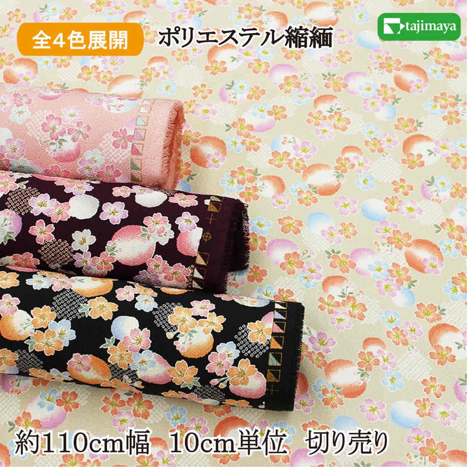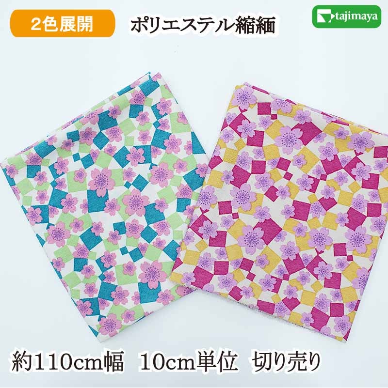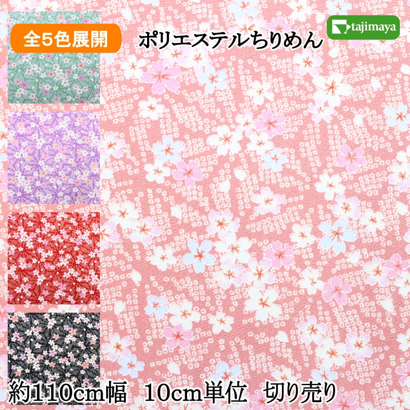 和柄 ポリエステルちりめんプリント 桜疋田文様 10cm単位 切り売り 全5色【布地 生地 和柄 縮緬】【C】