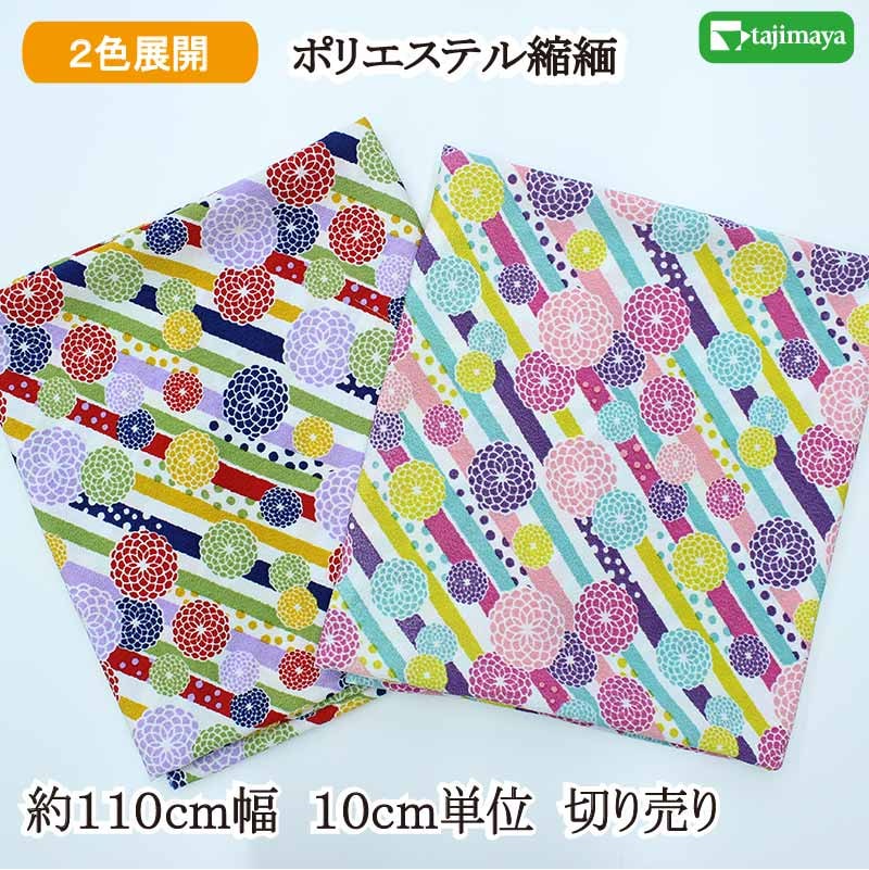 和柄 ポリエステルちりめんプリント 斜め丸菊文様 全2色 110cm幅 10cm単位 切り売り【布地 生地 和柄 和柄生地】