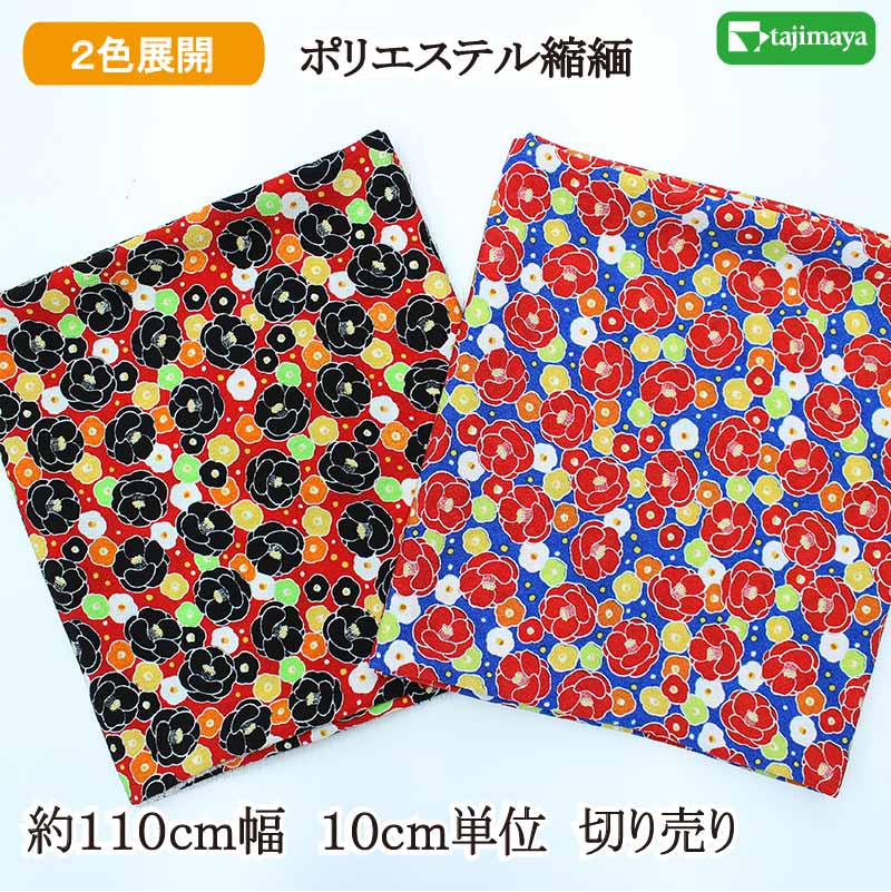 和柄 ポリエステルちりめんプリント つばき文様 全2色 110cm幅 10cm単位 切り売り【布地 生地 和柄 和柄生地】