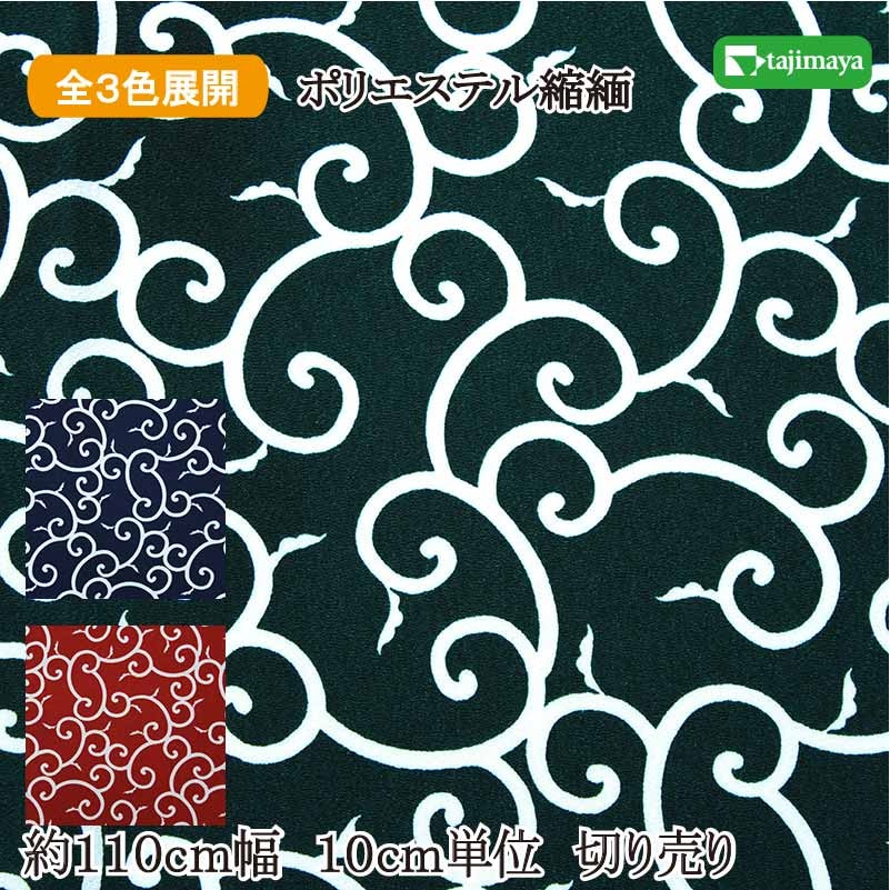 和柄 ポリエステルちりめんプリント 唐草文様 全3色全3色 110cm幅 10cm単位 切り売り【布地 生地 和柄 和柄生地】