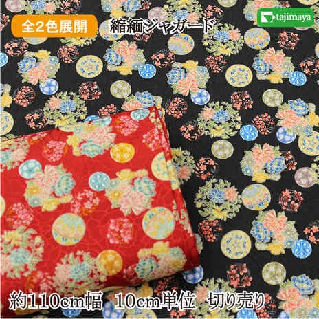 和柄 ちりめんジャガード 花まり 全2色 約110cm幅 10cm単位 切り売り