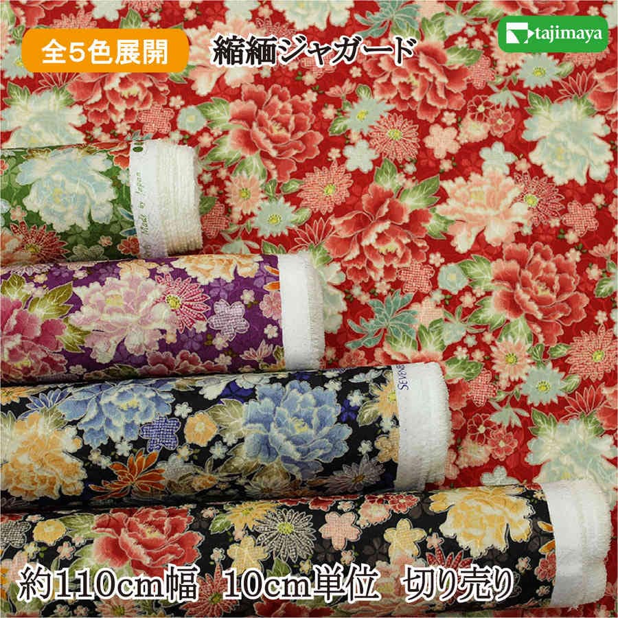 和柄 ちりめんジャガード 牡丹尽くし 全5色 約110cm幅 10cm単位 切り売り