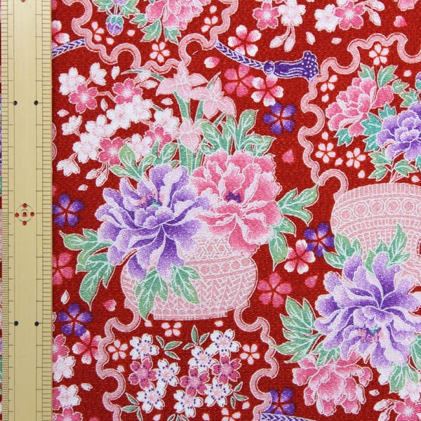 レーヨンちりめん 蒔絵調 梅裂取り文様 65cm幅【布地 生地 和柄 縮緬】