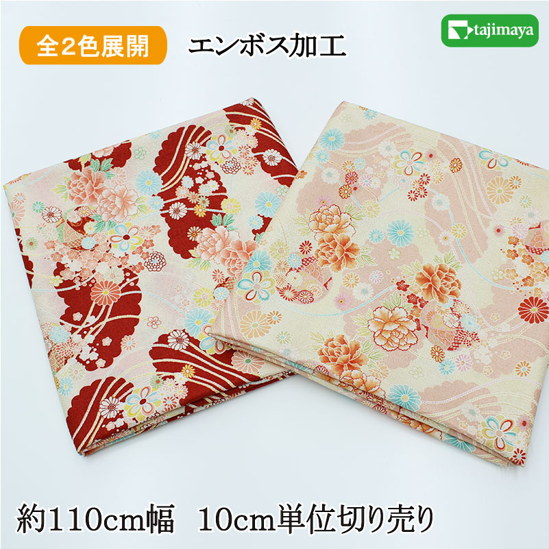 和柄 エンボス しだれ桜文様全2色 約110cm幅 10cm単位 切り売り【布地 生地 和柄 和柄生地】
