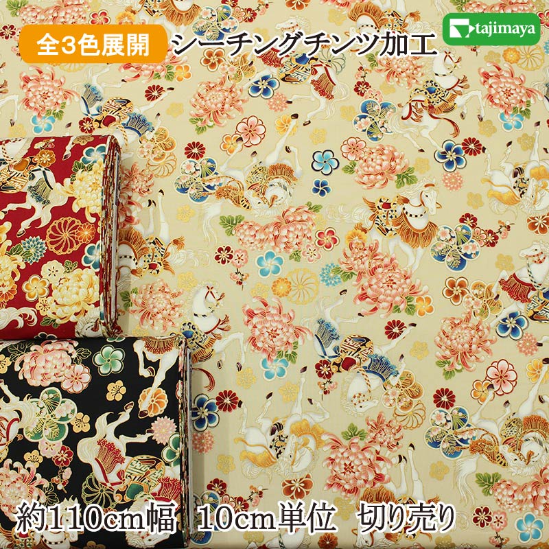 和柄 QUILT GATE 百花繚乱 金彩白馬 (神馬) 全3色 約110cm幅 10cm単位 切り売り