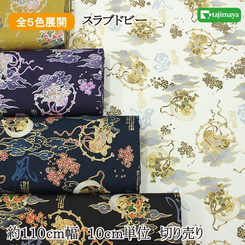 和柄 金彩雷鳴のしらべ文様 全5色 約110cm幅 10cm単位 切り売り