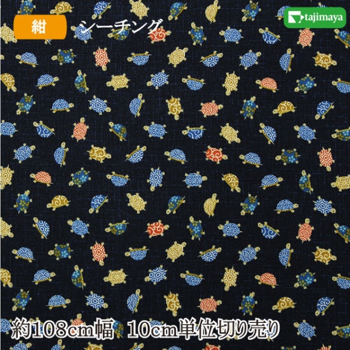 和柄 亀文様(紺)108cm幅 10cm単位 切り売り【布地 生地 和柄】