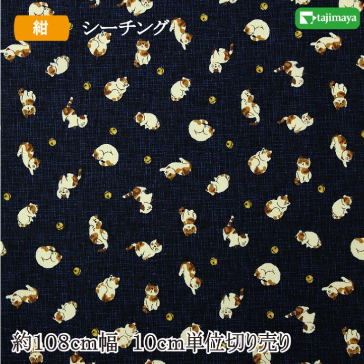 和柄 すず猫文様(紺)108cm幅 10cm単位 切り売り【布地 生地 和柄】