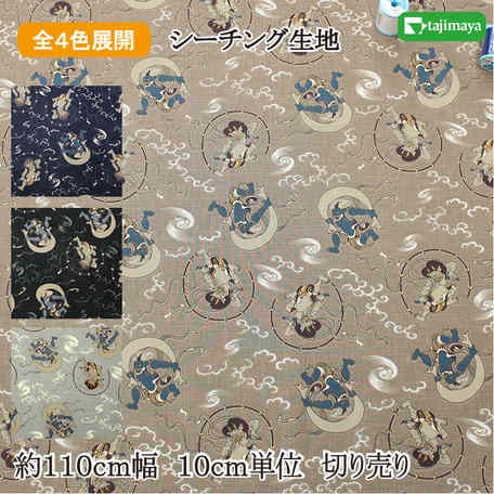 和柄 風神雷神文様 全4色 10cm単位の切り売り【布地 生地 和柄】【MT 45000-65】