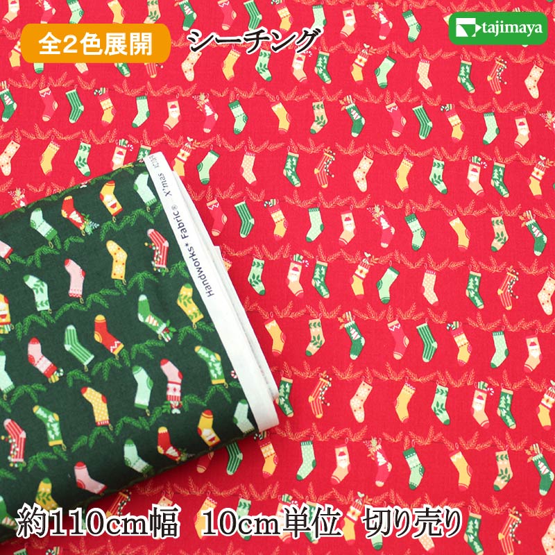 クリスマスプリント 生地 ホリデーソックス 全2色 約110cm幅 10cm単位 切り売り