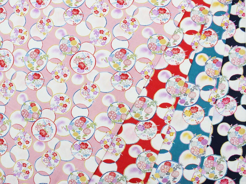 和柄 金彩毬と花文様 全5色 約110cm幅 10cm単位 切り売り