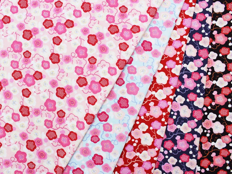 疋田ぼかし梅文様 全5色 110cm幅 10cm単位 切り売り【和柄 生地 布地 和柄生地】