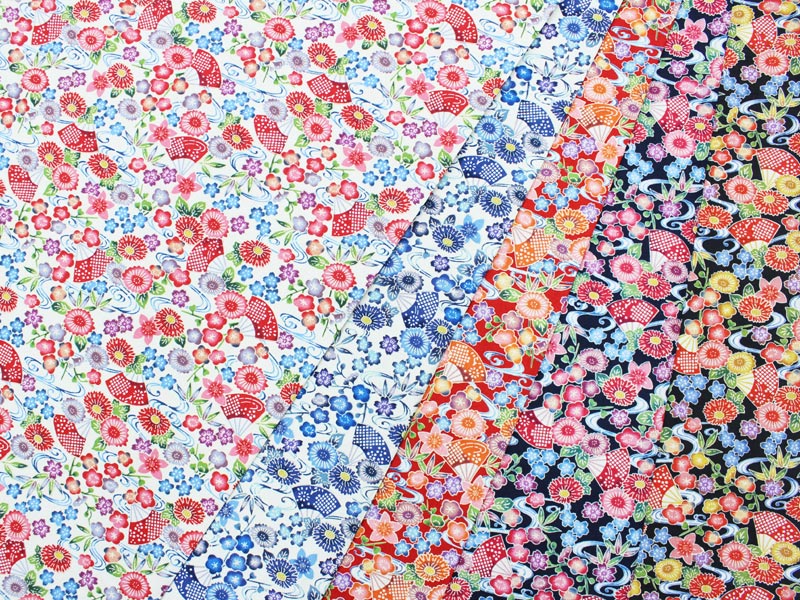 着物人文様 全4色 110cm幅 10cm単位 切り売り【和柄 生地 布地 和柄生地】【RS】
