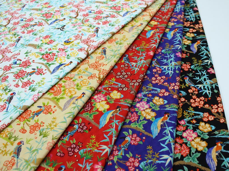 和柄 金彩つばきに黒ネコ文様 全5色【布地 生地 和柄】【和柄生地】