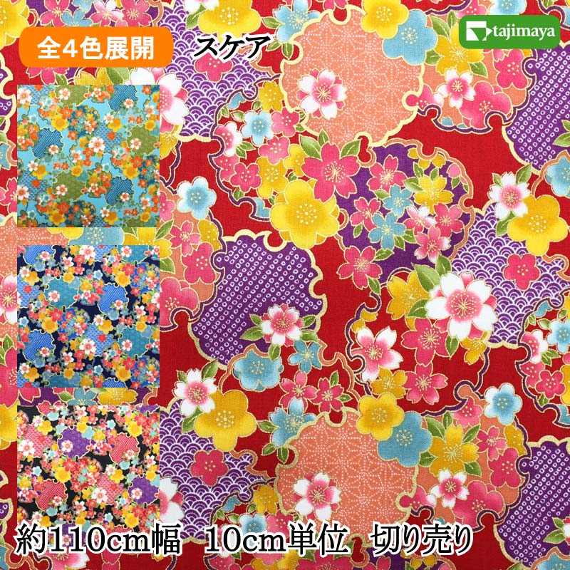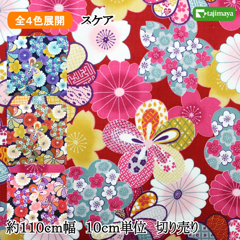 豪華幾何菊文様 全4色 10cm単位 切り売り【布地 生地 和柄 和柄生地】