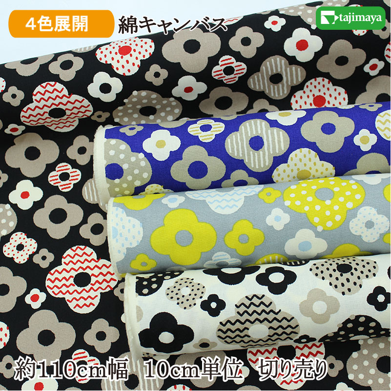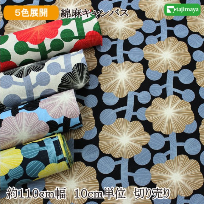 綿キャンバス 北欧風花柄 全2色 約110cm幅 10cm単位 切り売り【和柄 生地 布地 和柄生地】【IT-0118】