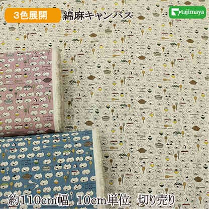 綿麻キャンバス しゃもじねこ 全3色 約110cm幅 10cm単位 切り売り
