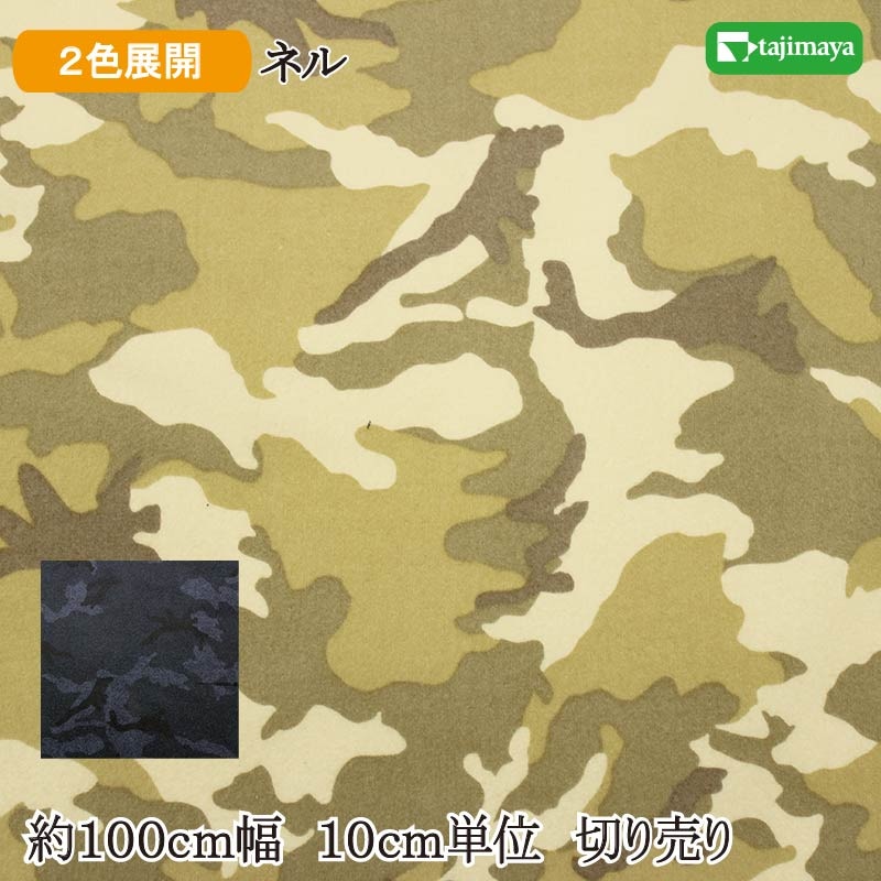 ネルプリント 迷彩柄 全2色 約100cm幅 10cm単位 切り売り