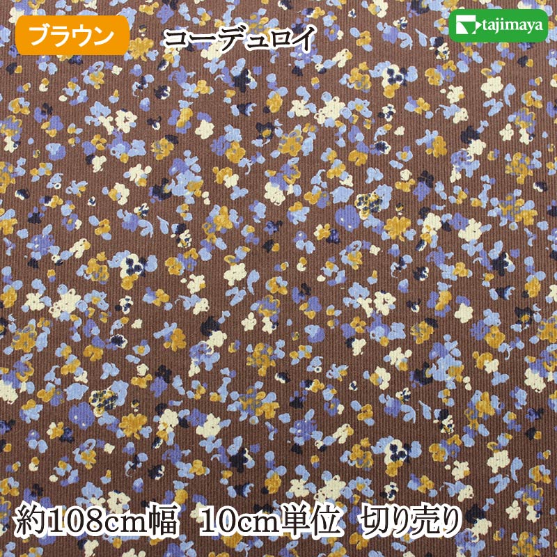 コーデュロイ(細コール) プリント生地 丸小花 ブラウン 約108cm幅 10cm単位 切り売り