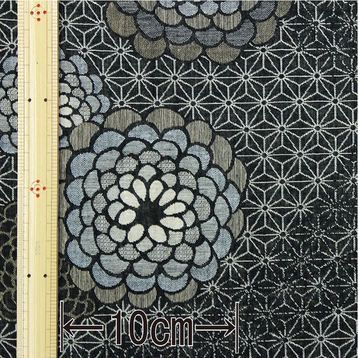 和柄二重織ジャガードガーゼ 麻の葉地菊紋文様 黒