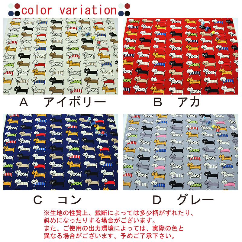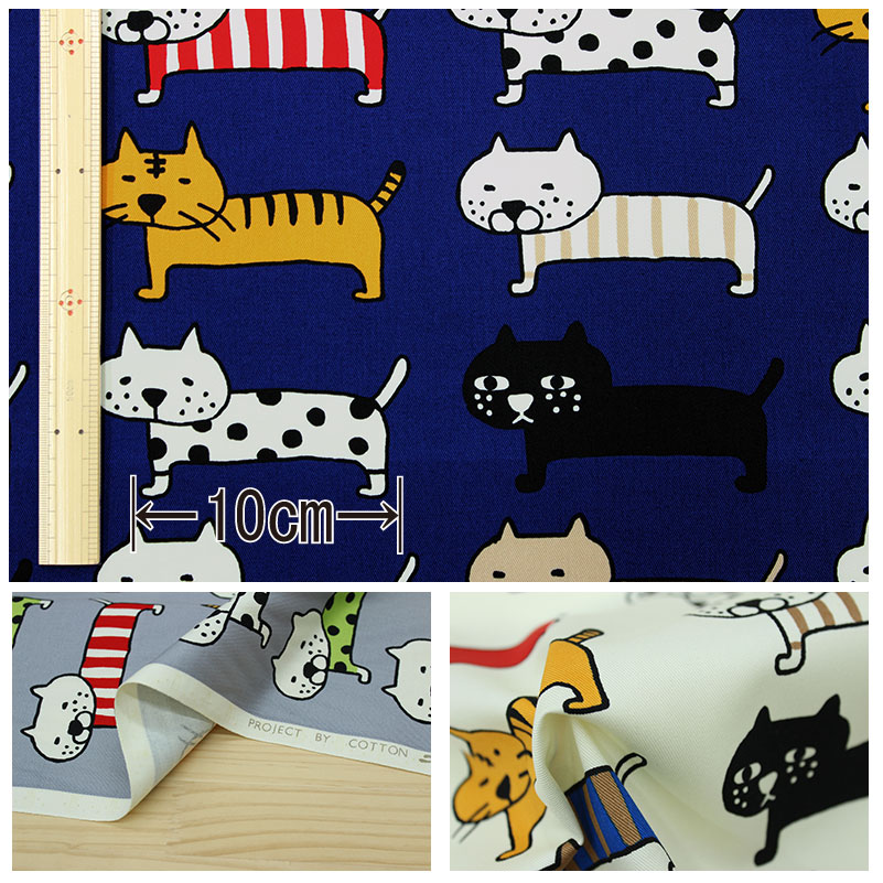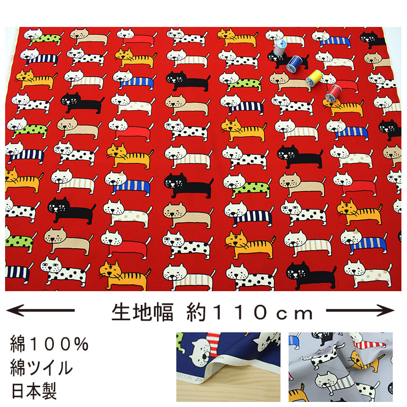 ツイル生地で愛くるしい表情のねこがこっちを見て整列した猫の大きな柄です。バッグやポーチなど小物、入園入学グッズ(レッスンバッグ、シューズケース、体操服入れ、巾着袋、エプロンやスモックなどのウェアに。 クッションカバーやソファーカバーなどのインテリア用品、パンツ、小物、ワンピース、バッグ、財布、エプロン、シャツ、パーカーなどの作品ができます。また、がま口や巾着などの小物など綿素材で扱いやすい生地で初心者向きです。
