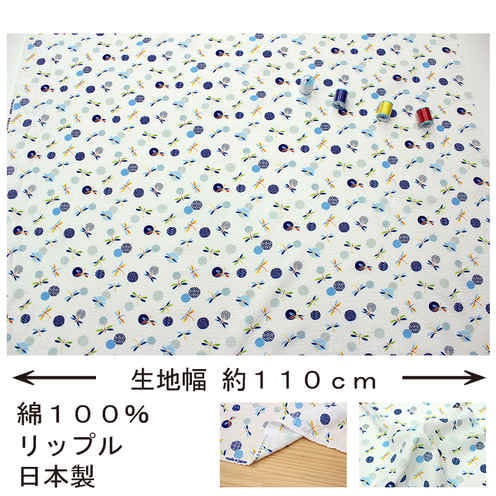 サッカー生地より柔らかい生地です。 フワっとしています。浴衣・浴衣ドレス・甚平ドレス シュシュ ヘアバンド ブラウス・スカート・袋物 ワンピース お手玉 こものづくり 袋物 和装こもの パジャマ インテリア小物などを作っていただけます。 リップルより水洗いしても風合いは長持ちします。夏はリップルの生地で作った浴衣や甚平でお祭りや盆踊りにお出かけ。サマーバケーションの夕涼みにもいいです。