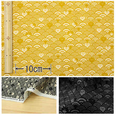 和柄 青海波に猫 全5色 約110cm幅 10cm単位 切り売り