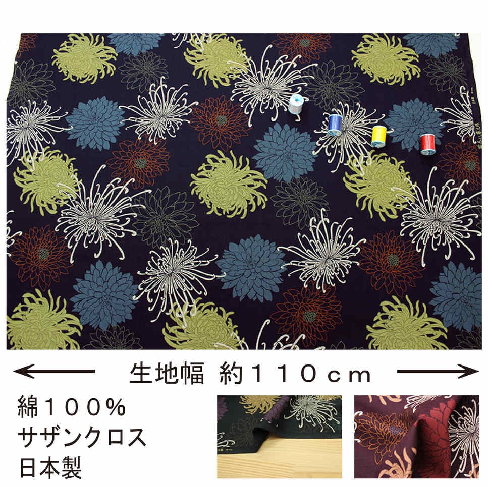 和柄 抜染pt 菊尽くし華文様 全3色 約110cm幅 10cm単位 切り売り